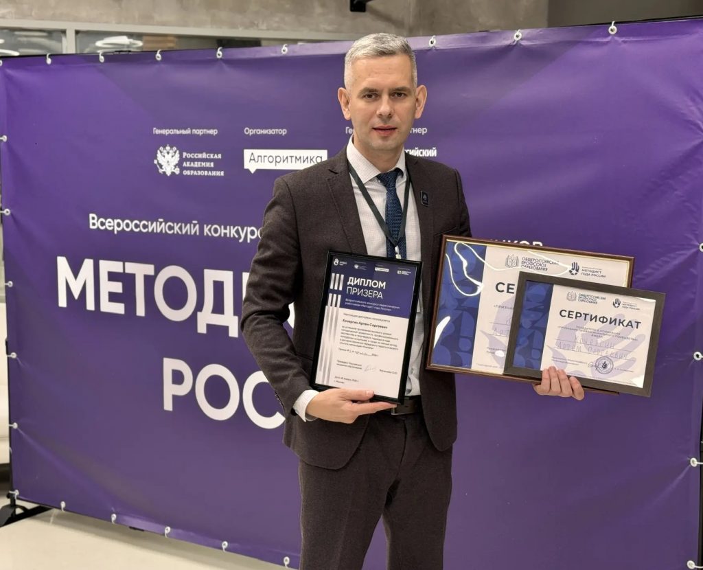 От всей души поздравляем Артема Сергеевича с достойными победами на Всероссийском конкурсе! Пусть Ваш профессионализм, талант и преданность делу вдохновляют коллег и обучающихся, а это достижение станет ступенью на пути к новым педагогическим высотам и ярким результатам!