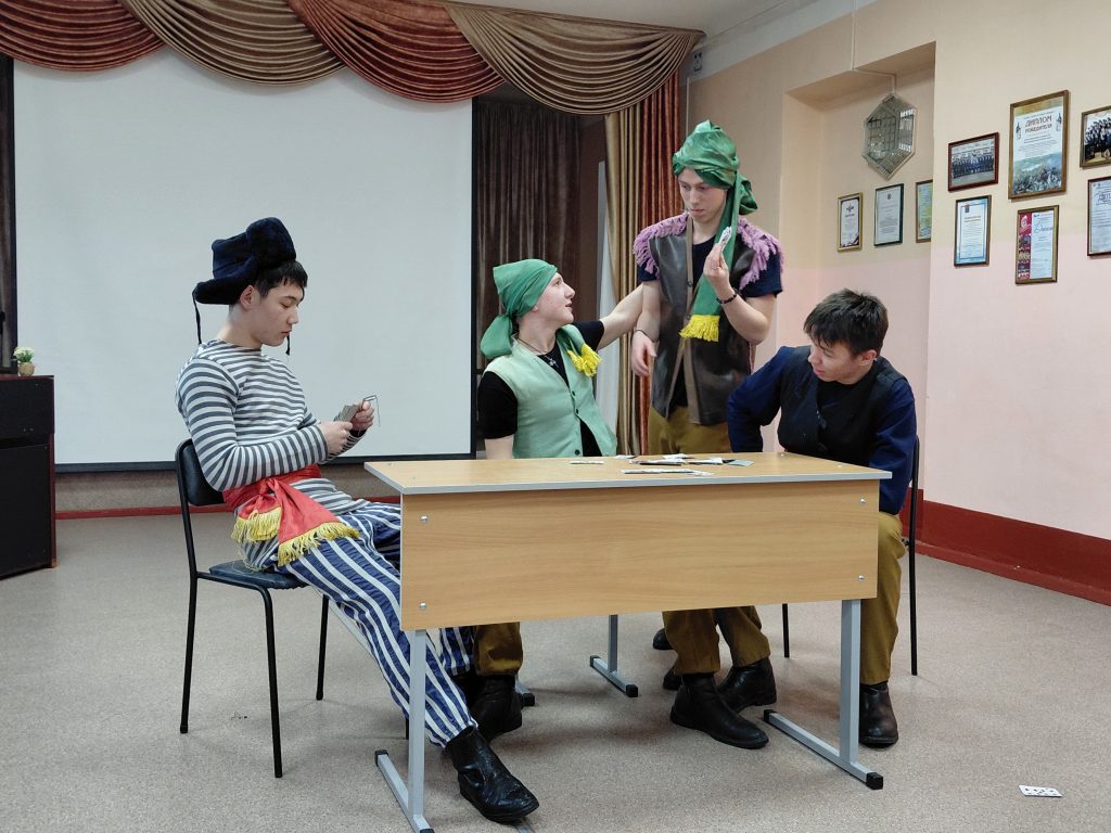На сцене воображаемого театра творческие группы восьмиклассников под руководством Ольги Ивановны Савониной и Людмилы Михайловны Ковалевой разыграли сцены из комедии Николая Гоголя «Ревизор». Каждый из актеров, несмотря на волнение, старался максимально реалистично вжиться в роль, передать дух эпохи и непередаваемую иронию гоголевской прозы.