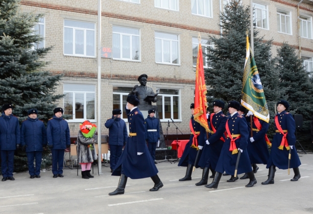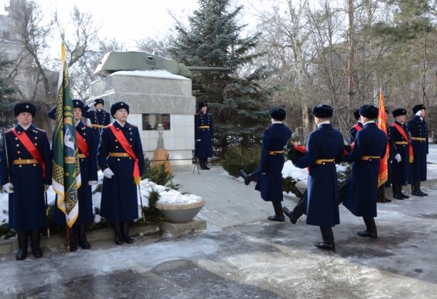 По завершении торжественного построения офицеры и кадеты возложили цветы к монументу танковой башни, расположенной на территории учреждения на месте героического сражения 124-й и 149-й стрелковых бригад и других частей 62-й Армии.