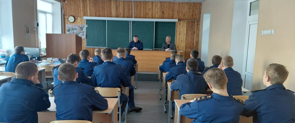 Первый заместитель директора, в свою очередь, рассказал кадетам обо всех этапах работы следователя, требующей профессионализма и точности, об отличии их функций от функций следователя-криминалиста, а также о важнейшей миссии — защищать людей и восстанавливать справедливость, обеспечивая верховенство закона.