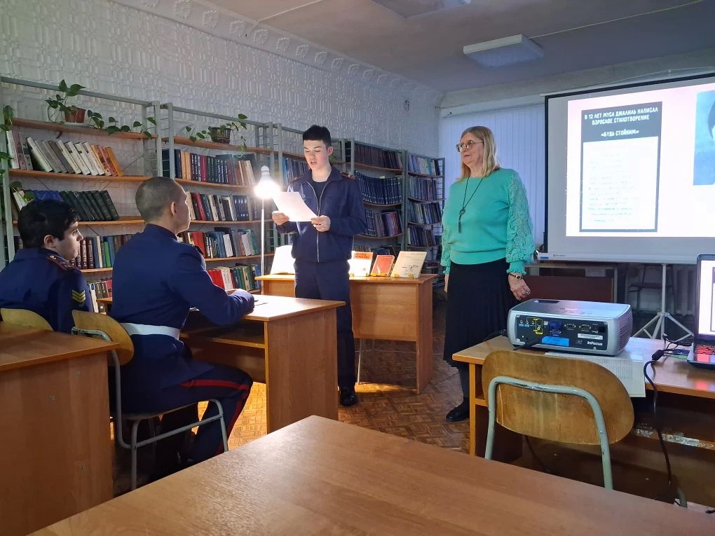 Педагог дополнительного образования Волгоградского кадетского корпуса СК России имени Ф.Ф. Слипченко Татьяна Анатольевна Кнышова организовала для десятиклассников познавательное мероприятие «Твой подвиг не забудется в веках…», приуроченное к 120-летию со дня рождения татарского поэта и военного корреспондента Мусы Джалиля.