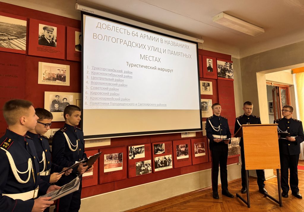 Кадеты-участники поисково-краеведческой работы по изучению и увековечиванию памяти подвигов советских воинов, боевого пути частей и соединений, участвовавших в Сталинградской битве с начала учебного года с интересом посвящали свое время работе с историческими документами в архивах, музеях и библиотеках, изучали материалы поисковиков, встречались с научными сотрудниками, выезжали на места сражений периода Сталинградской битвы, после чего размещали свои материалы о ходе исследования в социальных сетях. Помощь обучающимся оказывали их наставники – воспитатели и учителя кадетского корпуса.