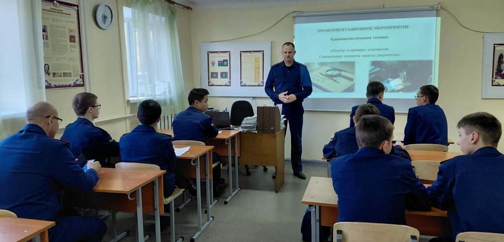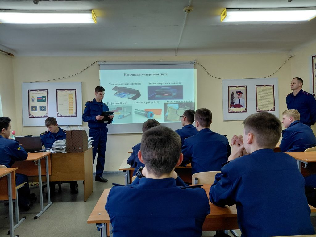 В Волгоградском кадетском корпусе СК России имени Ф.Ф. Слипченко для обучающихся 9-х классов проведено мероприятие по криминалистической технике «Осмотр и проверка документов. Специальные элементы защиты документов».