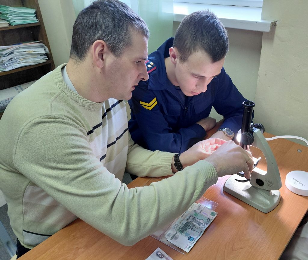 Ребята узнали о специальных элементах защиты документов, а с помощью микроскопа и УФ-осветителя научились распознавать оригинальные денежные купюры.