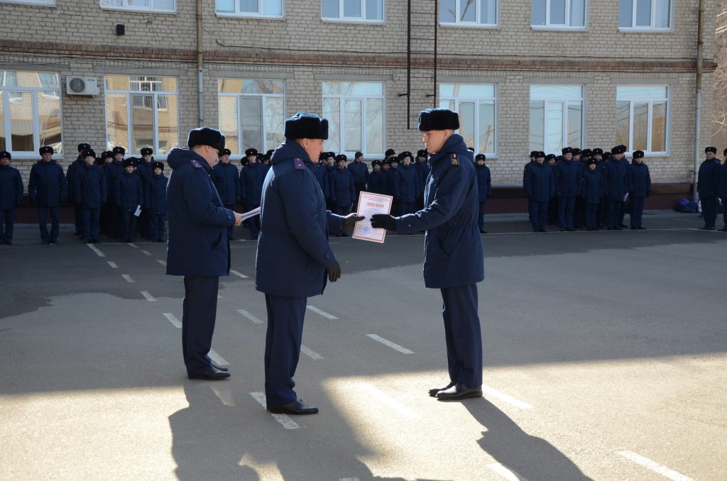 На традиционном построении в Волгоградском кадетском корпусе СК России имени Ф.Ф. Слипченко директор Алексей Викторович Пиндыч поздравил победителей и призеров олимпиад, различных конкурсов и спортивных состязаний.