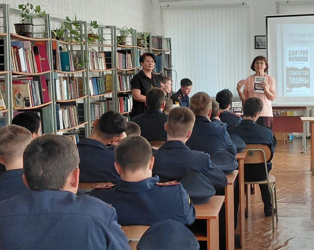 Поделилась с ребятами своим отзывом и ощущениями о прочтении одной из книг и заведующая библиотекой кадетского корпуса Галина Петровна Бычкова.