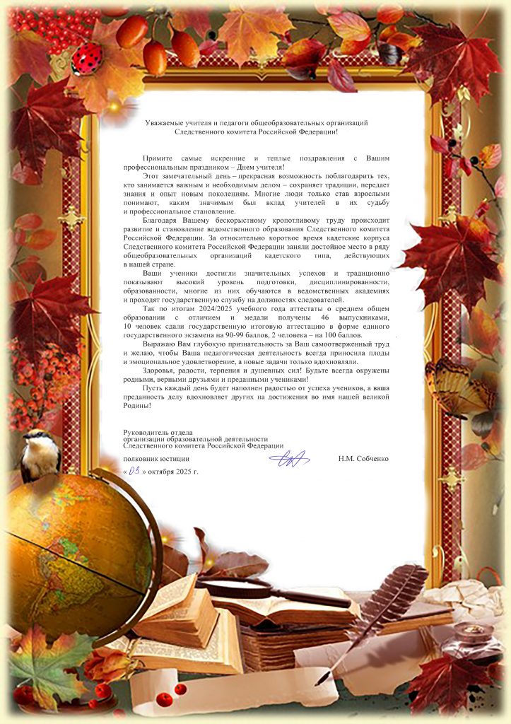 В Волгоградском кадетском корпусе СК России имени Ф.Ф. Слипченко проходят мероприятия, посвященные Дню учителя