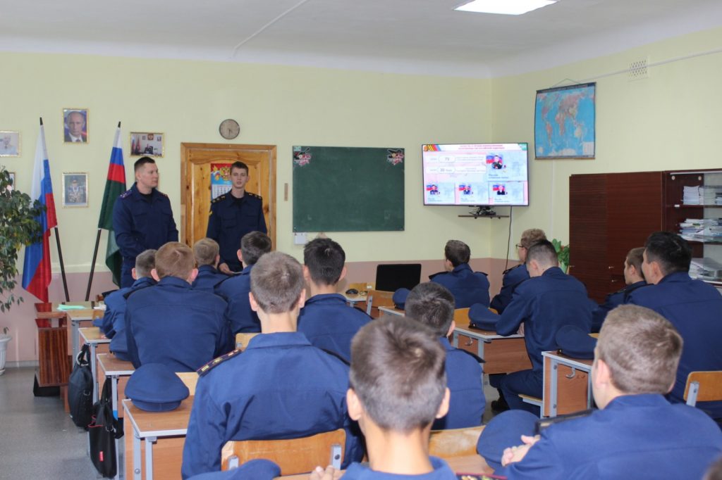На занятии кадеты посмотрели выступление председателя Следственного комитета России Александра Бастрыкина, который поддержал проект и стал главой его попечительского совета.