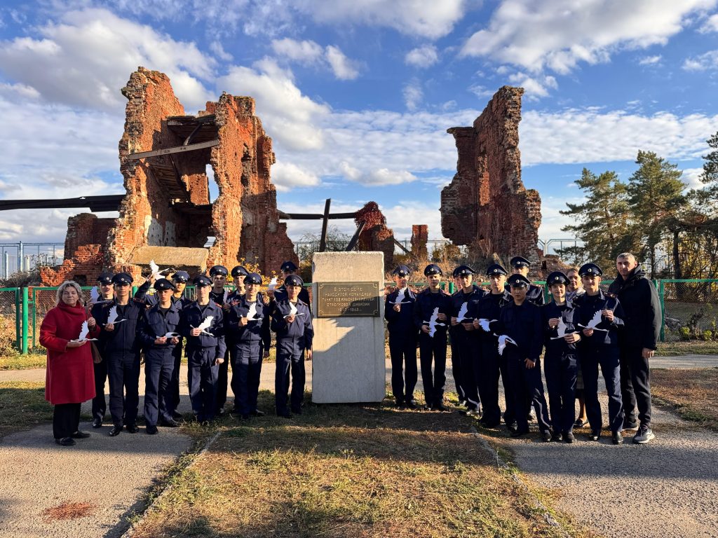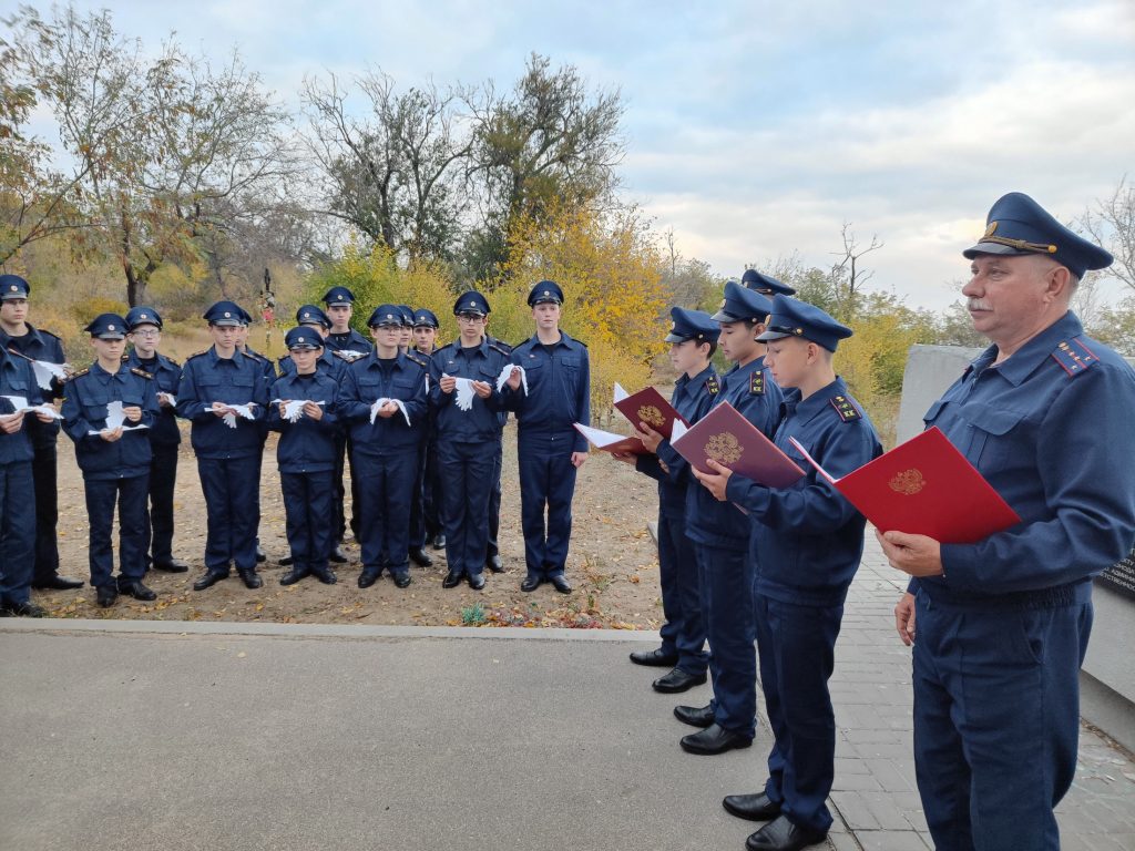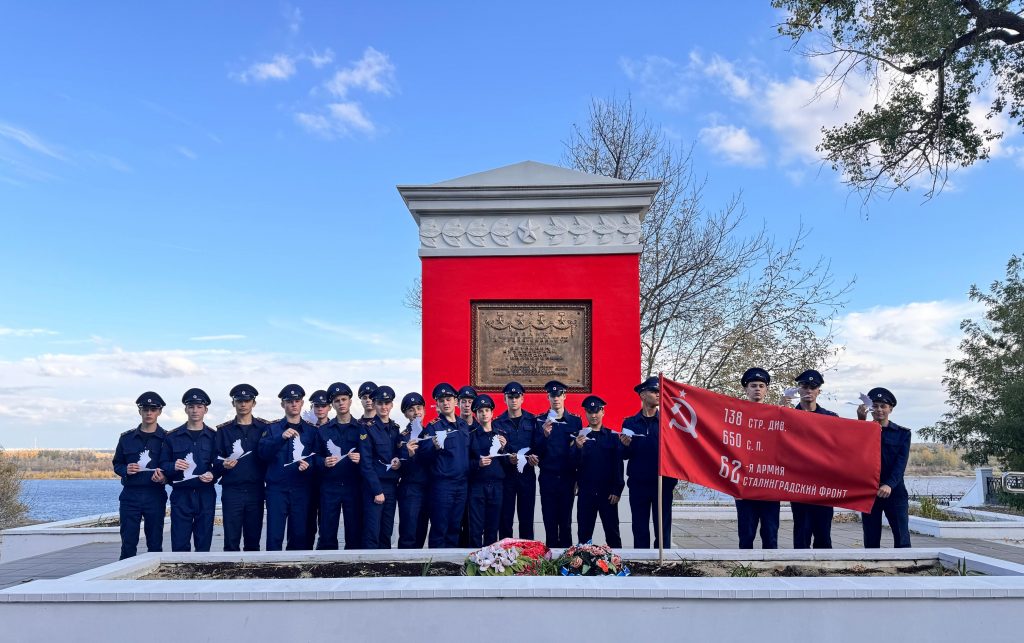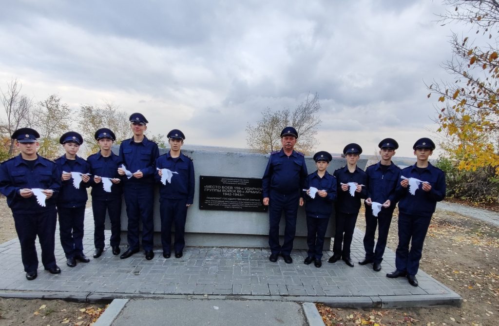 Вместе с воспитателями Александром Ивановичем Молчановым, Сергеем Васильевичем Мачеевым и Михаилом Васильевичем Полянским кадеты 8-х классов собрались у мемориала, возведенного в честь сражения бойцов 112-й стрелковой дивизии Сологуба под руководством лейтенанта комсомольца Алексея Очкина в поселке Нижний Тракторный города Волгограда.