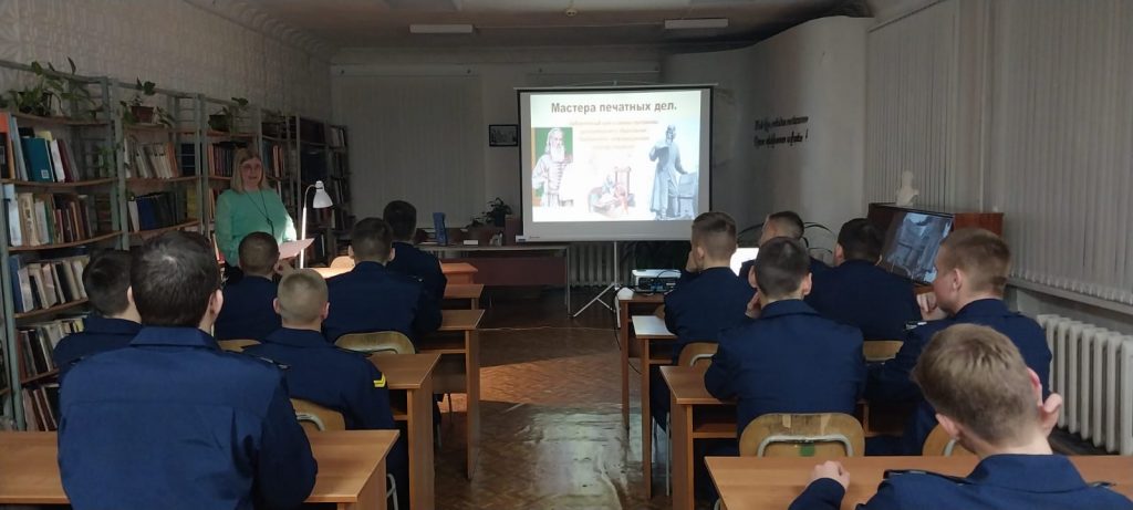 Во время библиотечного урока кадеты узнали о первопечатнике Европы XV века Иоганне Гутенберге, который создал способ книгопечатания подвижными литерами, оказавший огромное влияние на всемирную историю, а также стал создателем первого крупного печатного издания «Библия».
