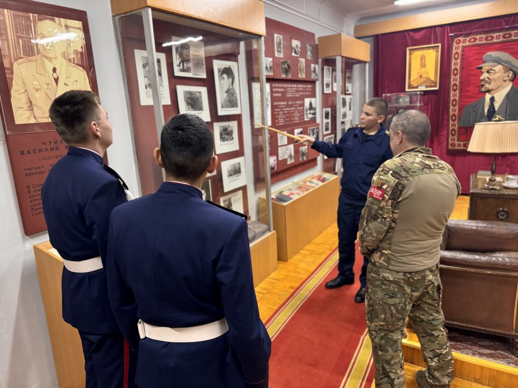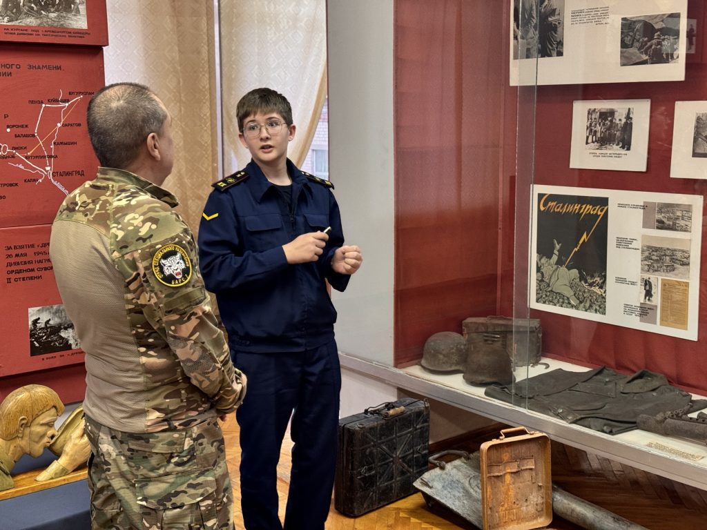 После окончания мероприятия кадеты пообщались с Евгением Эдуардовичем в неформальной обстановке. Ребята пожелали ветерану СВО здоровья и мира, после чего провели для гостя экскурсию по Народному музею боевой и трудовой славы тракторозаводцев.