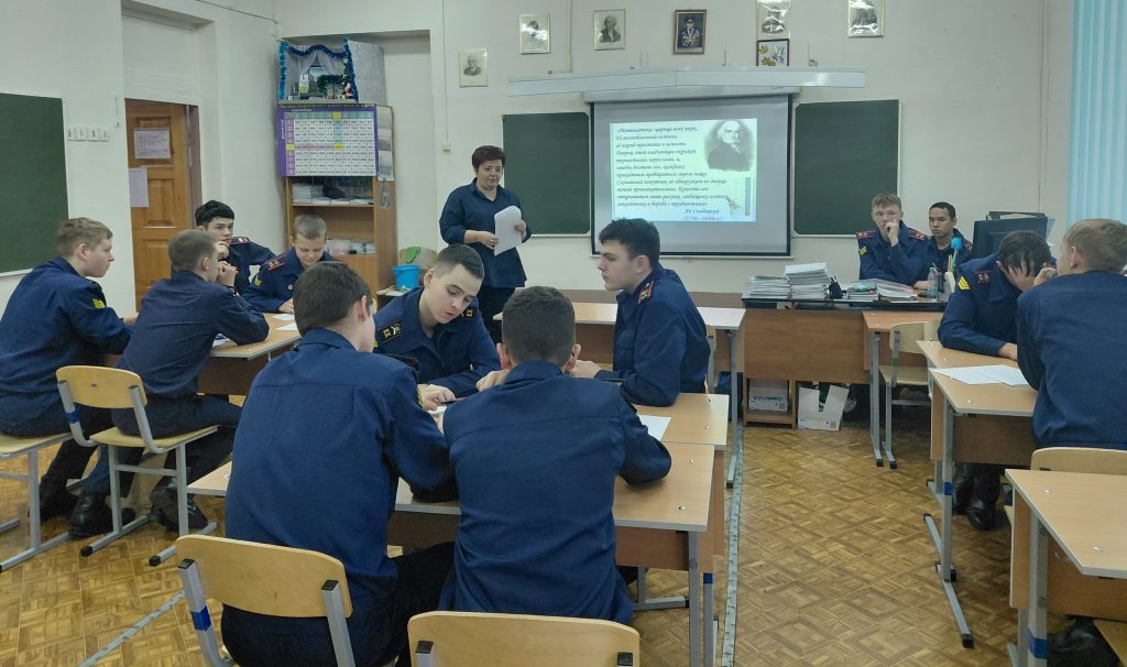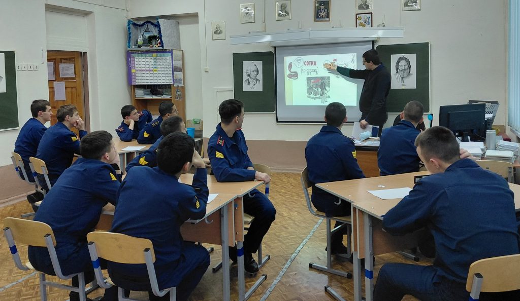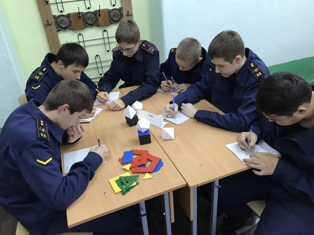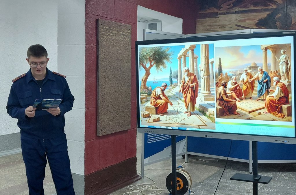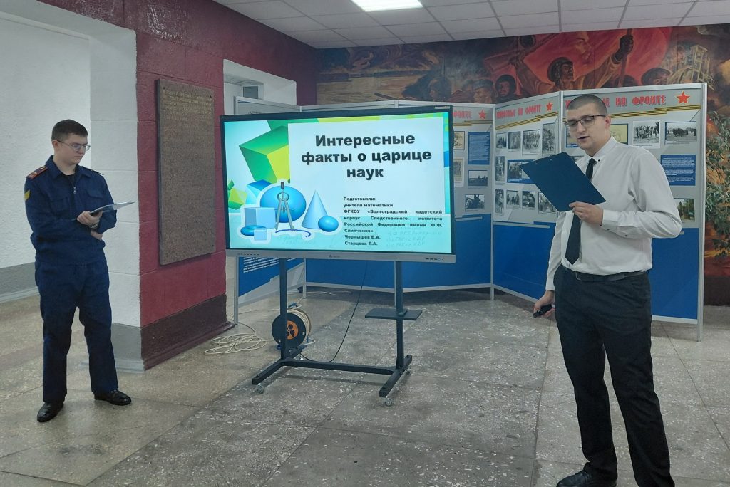 На переменах обучающиеся кадетского корпуса узнали об интересных фактах о царице наук: о первых математиках, любопытных открытиях ученых и событиях из мира чисел; разгадывали ребусы и выполняли задания с геометрическими фигурами.